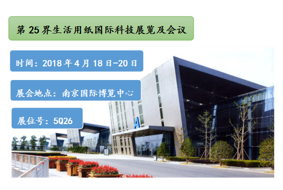 第二十五界生活用紙國(guó)際展覽及會(huì)議(2018年生活用紙年會(huì)暨婦嬰童、老人衛(wèi)生用品展會(huì))將于2018年4月18日-20日在南京國(guó)際博覽中心盛大召開。