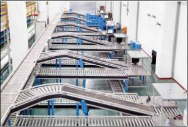 自動化、智能化的輸送分揀系統(tǒng)貫穿出入庫、上架、補貨、復(fù)核、分揀全部倉儲流程,輸送效率1200件/時,分揀效率1800件/時。